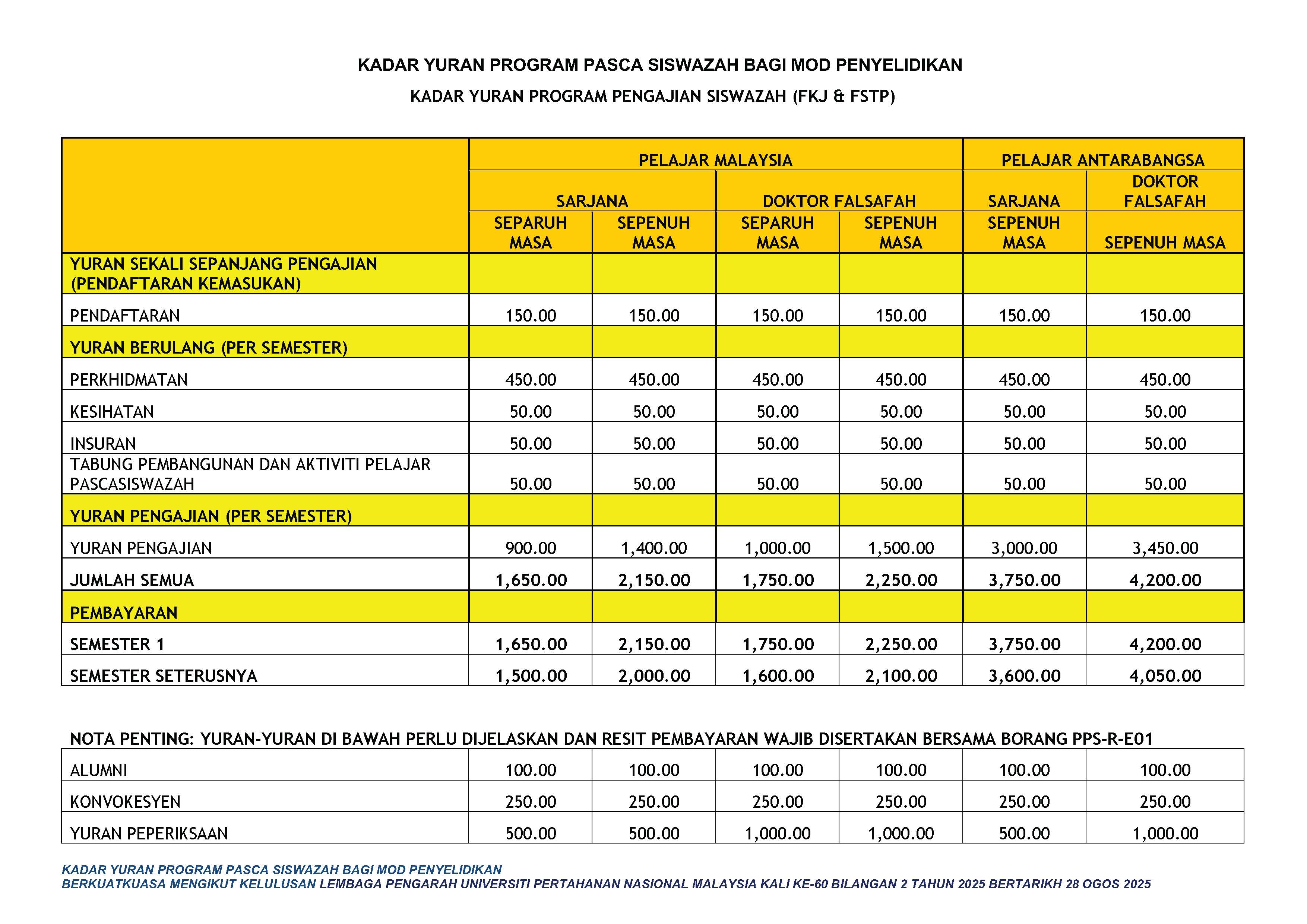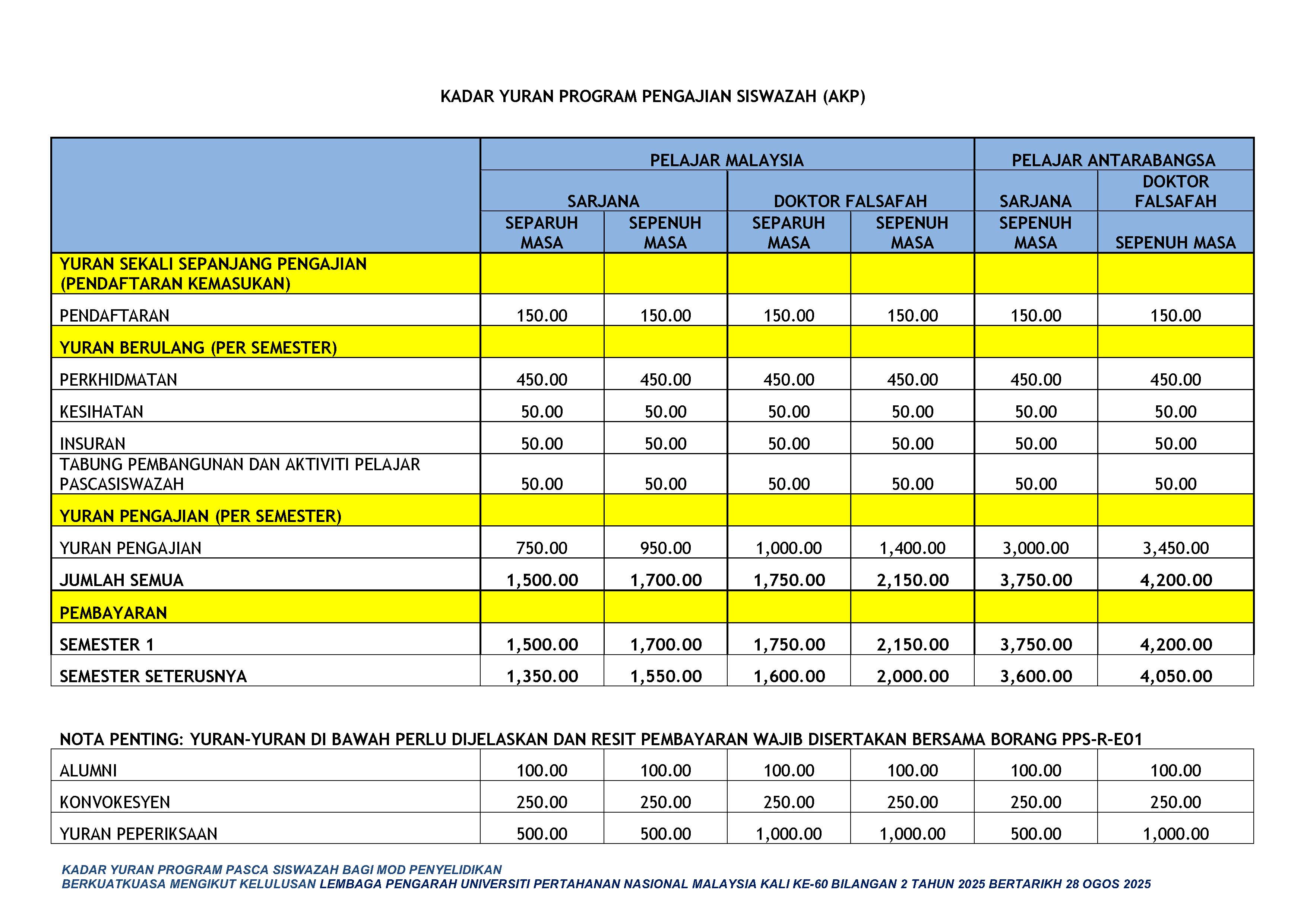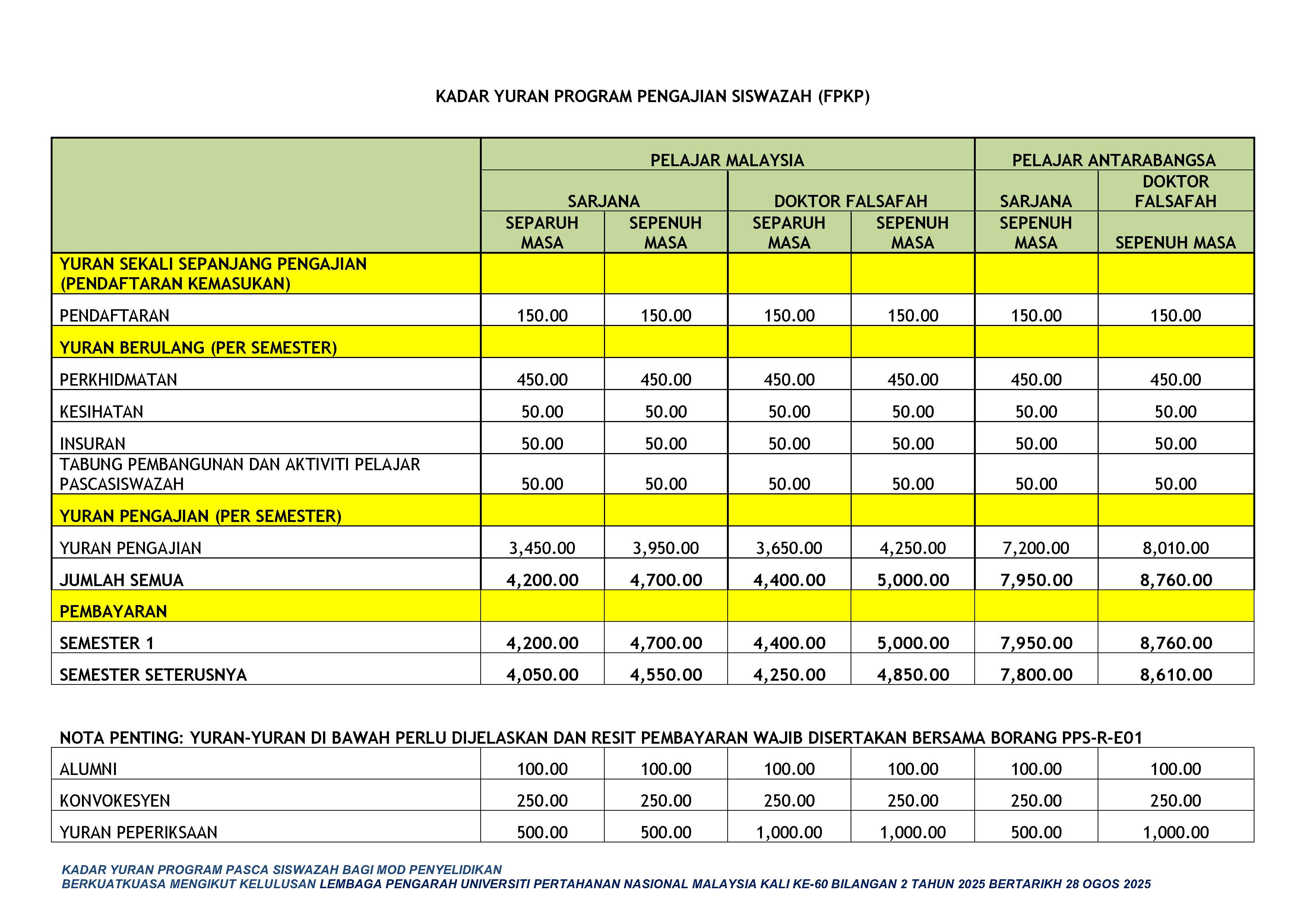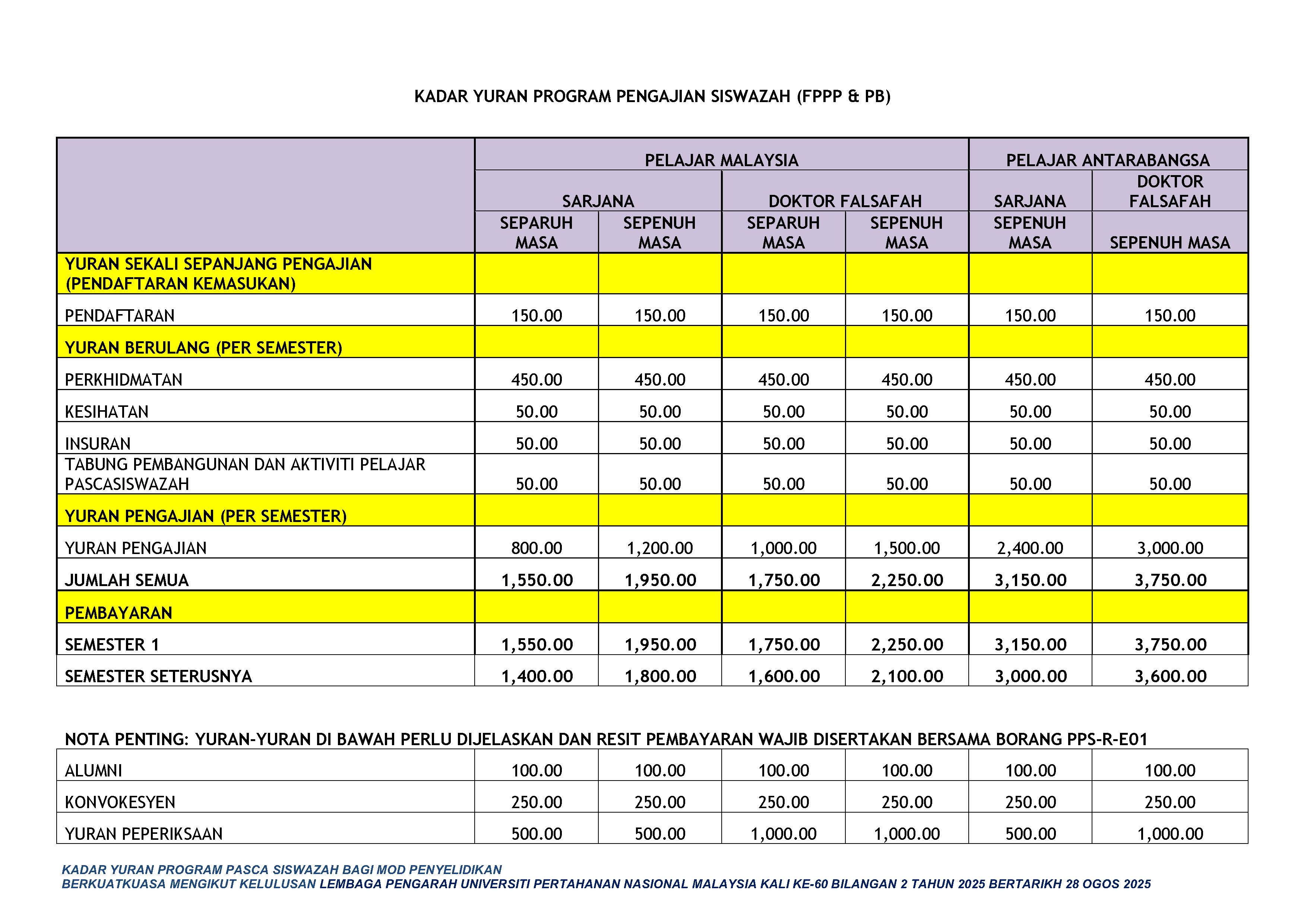 Referring to the Decision, the LPU has approved a Postgraduate Development and Student Activity Fund Contribution of RM50.00 for all postgraduate students, involving new student registration and for every recurring semester, effective 28 August 2025 without exception.
